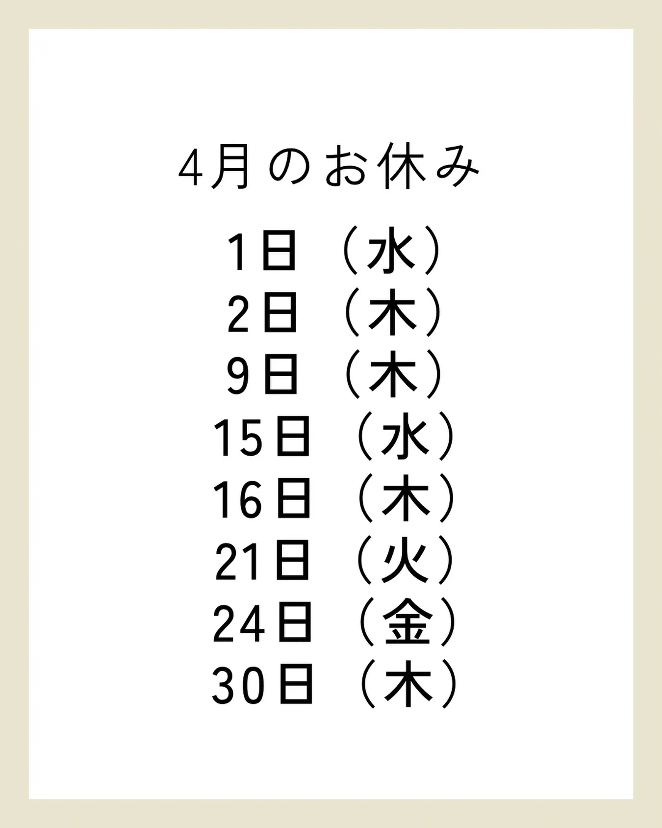 indies art club 4月のお休みです🍀 来月もよろしくお願いします🙇